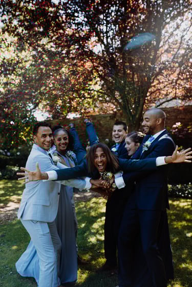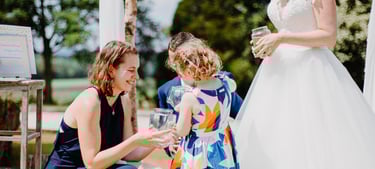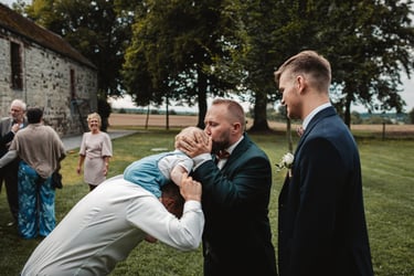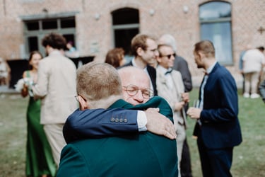 Les photos de groupe n’ont pas à être figées et pénibles. On fait ça simplement, rapidement, dans la bonne humeur. Puis place aux moments vrais : les embrassades, les réactions, les éclats de rire, les enfants qui courent partout.