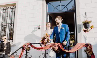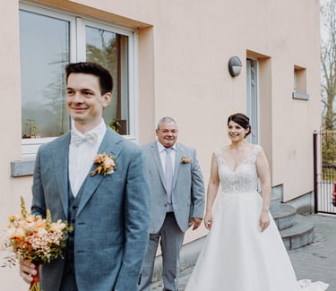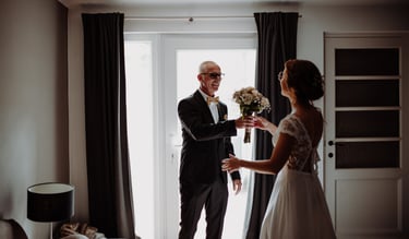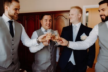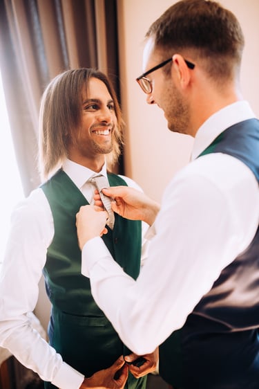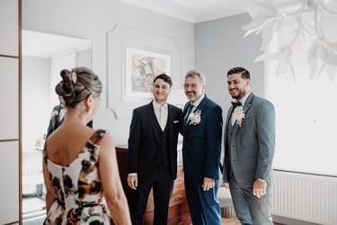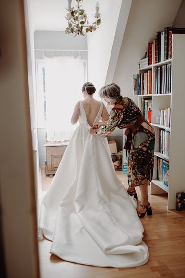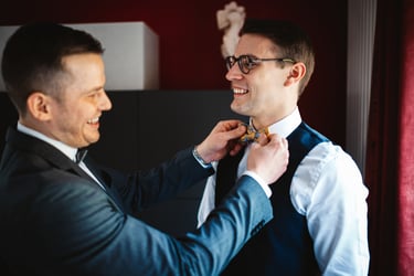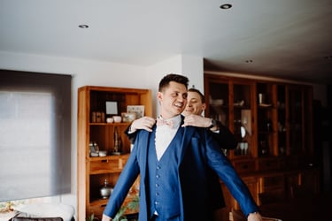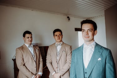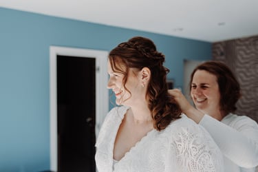 Les préparatifs sont un concentré d’adrénaline douce : les proches qui passent la tête à la porte, la robe suspendue, un costume qu’on ajuste, les détails qu’on vérifie dix fois. J’y cherche les gestes tendres, les éclats de rire inattendus et tout ce qui raconte le début de votre histoire du jour.
