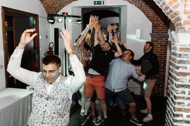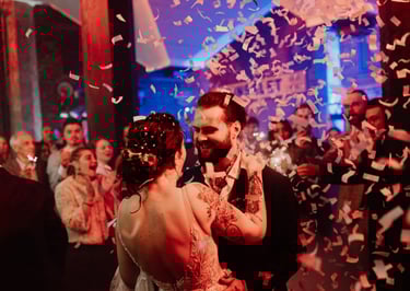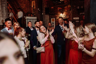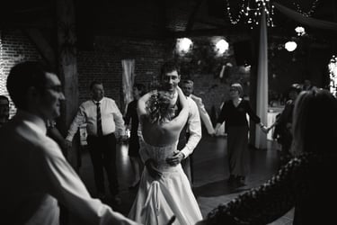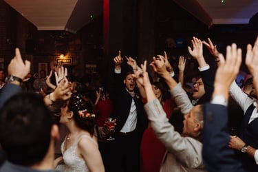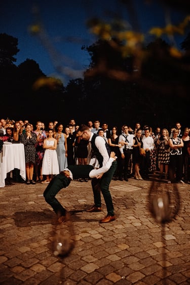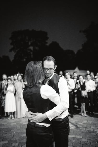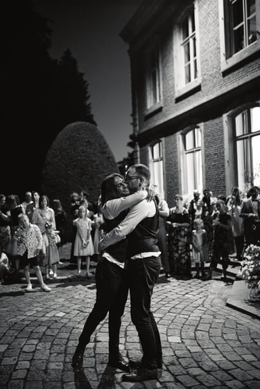La lumière baisse, les cœurs s’ouvrent, les émotions montent. Puis vient la fête — la vraie. Sur la piste, je me faufile pour capturer les danses, les regards complices, l’énergie, la joie à l’état brut.
